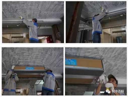 ①吊裝中央空調室內機,并對內機進行包裹,避免有灰塵雜質進入;